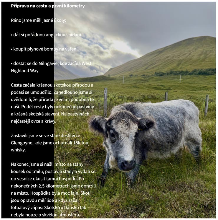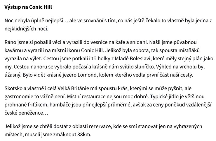 Tentokrát trošku jiné vydání (myslím tím technicky, nikoliv duchem. Ondra s kamarádama se vydali do Skotska na čundr a vznikl z cesty deníček u autora na Google cloudu. Dostal jsem svolení jeho deníček publikovat na WWWpraseti. No a abych zachoval ráz toho deníčku, je to všechno včetně textů věrná deníková kopie: